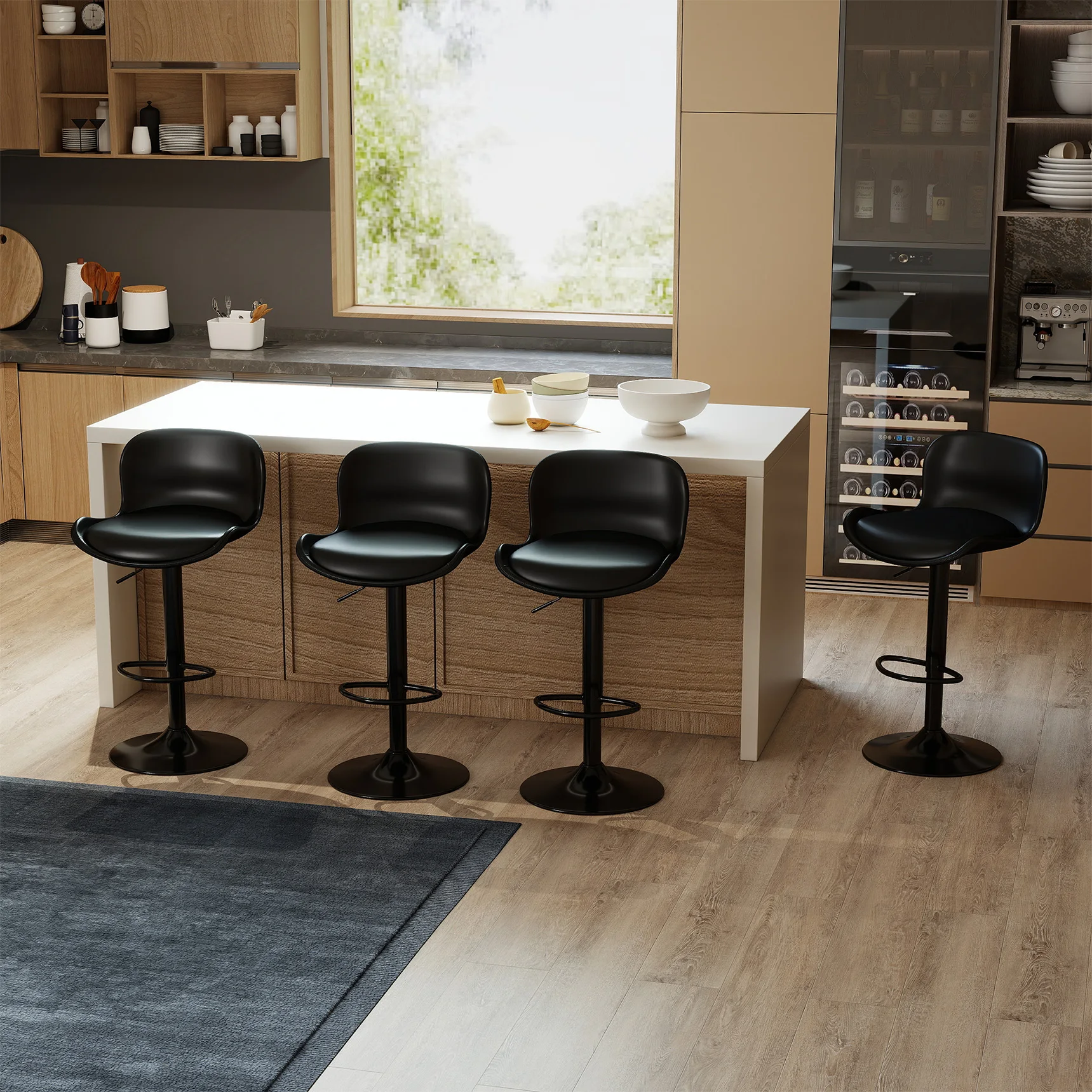 Elegant appearance, exquisite bar stools: the combination of white and grey colours and elegant design perfectly blends retro and modern styles. The combination of imitation leather seats and exquisite stitching design highlights the high-end design sense. This modern swivel stool is suitable for a variety of occasions, such as bars, pubs, breakfast bars, kitchen islands, etc.