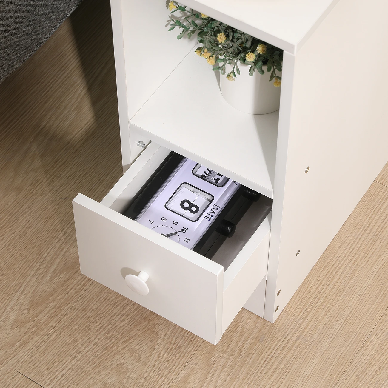 1.【Slim Bedside Tables with Drawer & Storage Shelf Dimension】Overall size: 35×20×45cm(L×W×H), which makes full use of the vertical space, suitable for narrow and small space