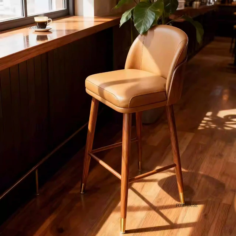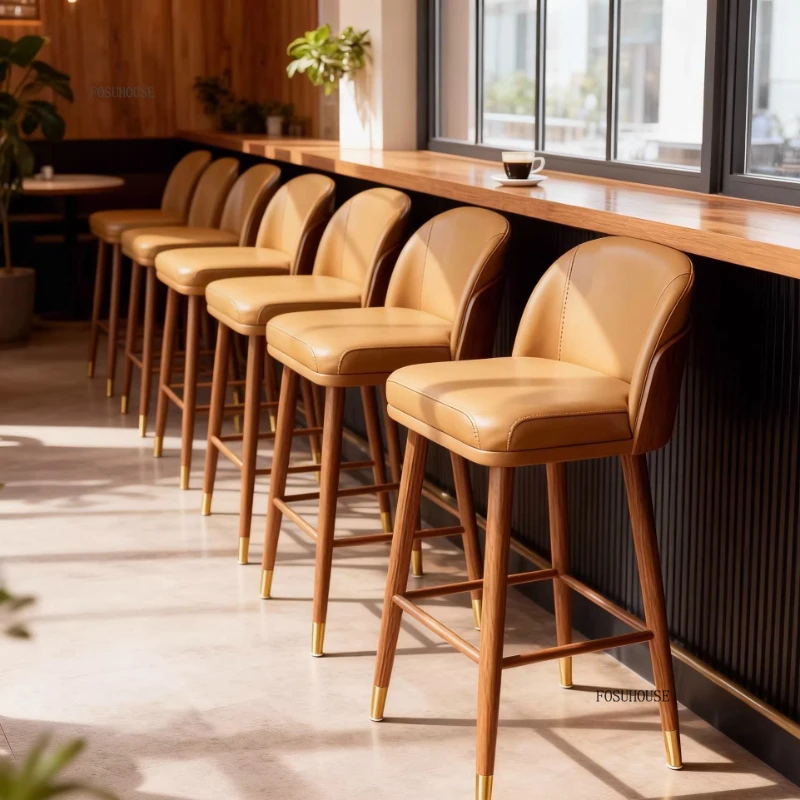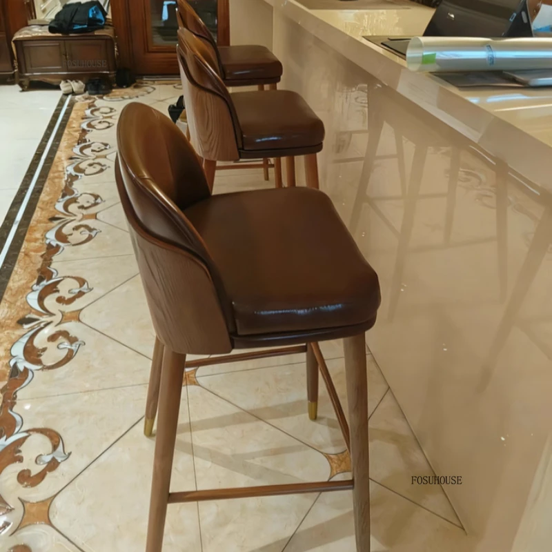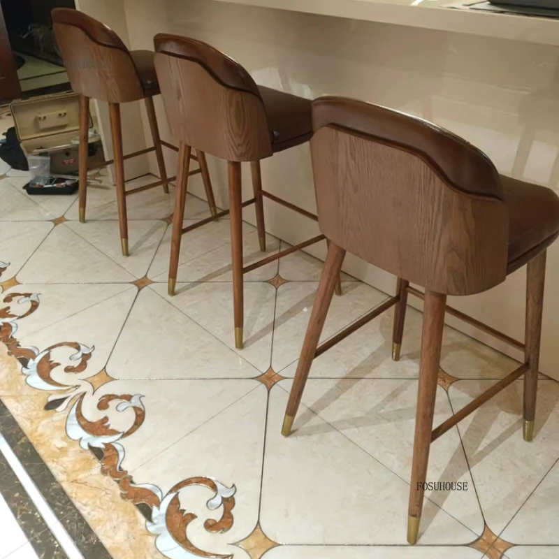 Italian Luxury Bar Chairs Designer Solid Wood Bar Stool for Kitchen Furniture Home Modern Style Island High Stools Bar Furniture
