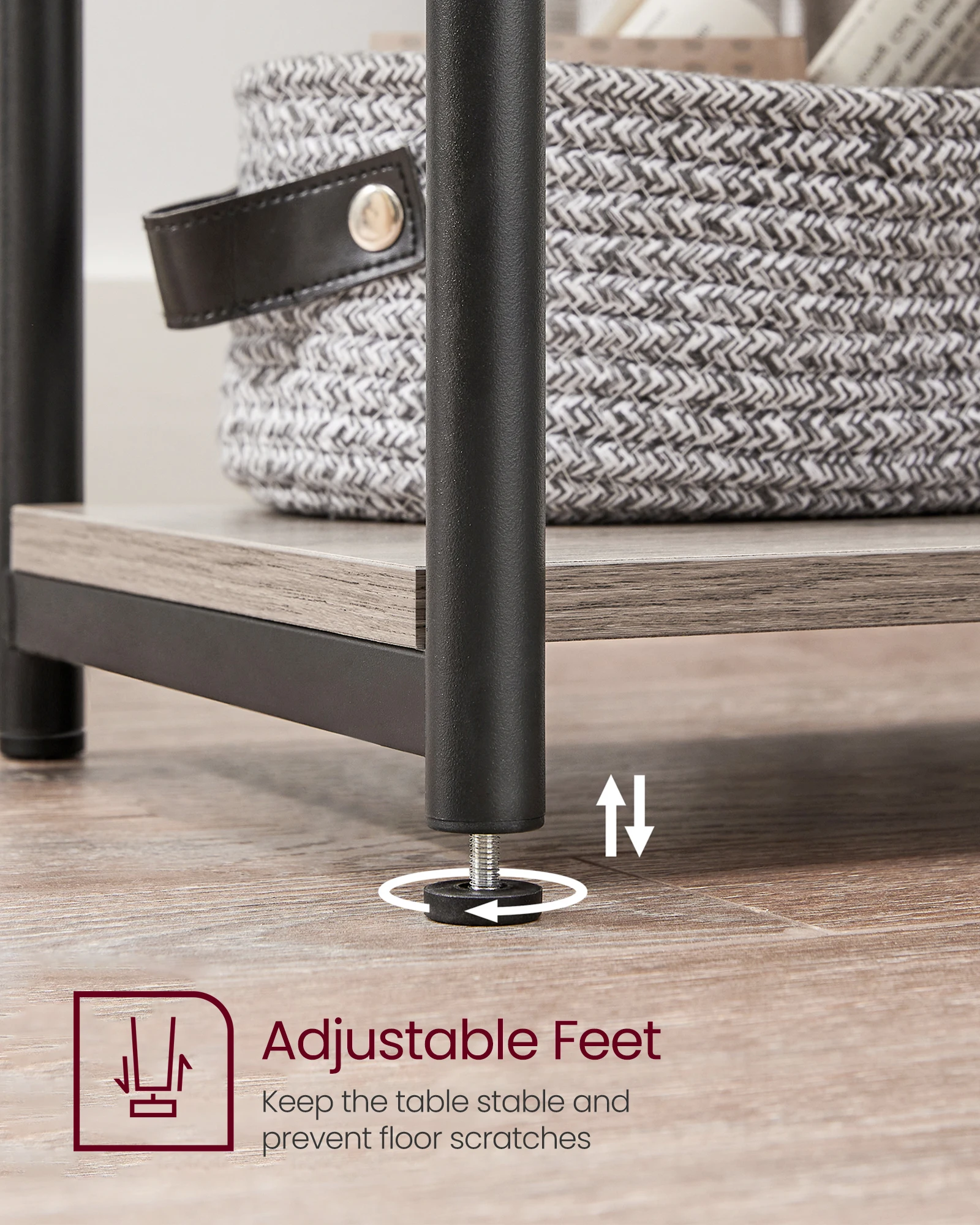 [Stable and Durable] Crafted with quality particleboard, a robust steel frame, and equipped with adjustable feet, this end table features great durability and high stability
