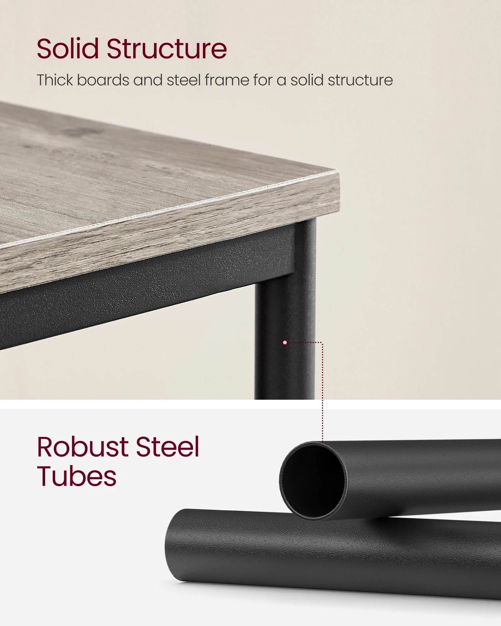 [Adds Unique Character] The heather greige shelves inject a vintage vibe, and the steel tubes add an industrial feel—they combine together in this side table to create a unique charm